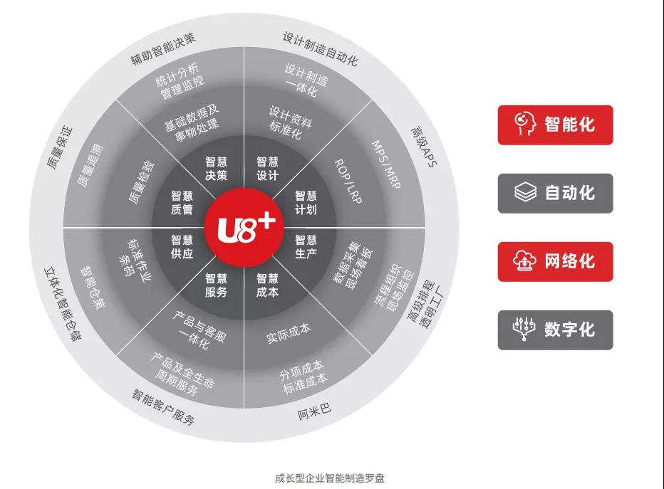 用友U8+秉承【智能制造 智能管理】的理念,从成长型企业的数智化基础现状出发,基于工业互联网管理特点和要求为成长型企业制造数智化升级转型提供一套全面、分层级的升级模型。内容涵盖制造企业的设计、计划、物流、生产、质量、财税和服务方面,奠定智能管理的基础,助力企业实现产业升级,逐步迈向智能制造。